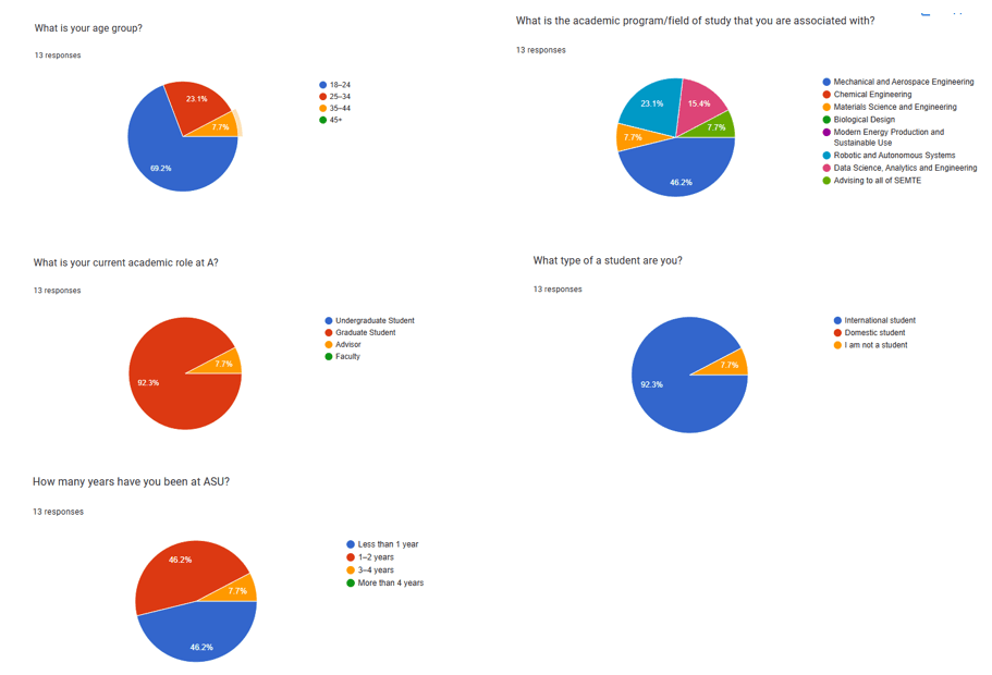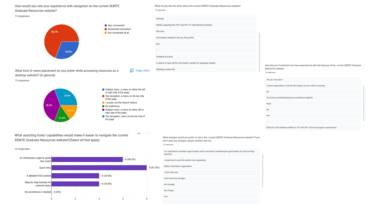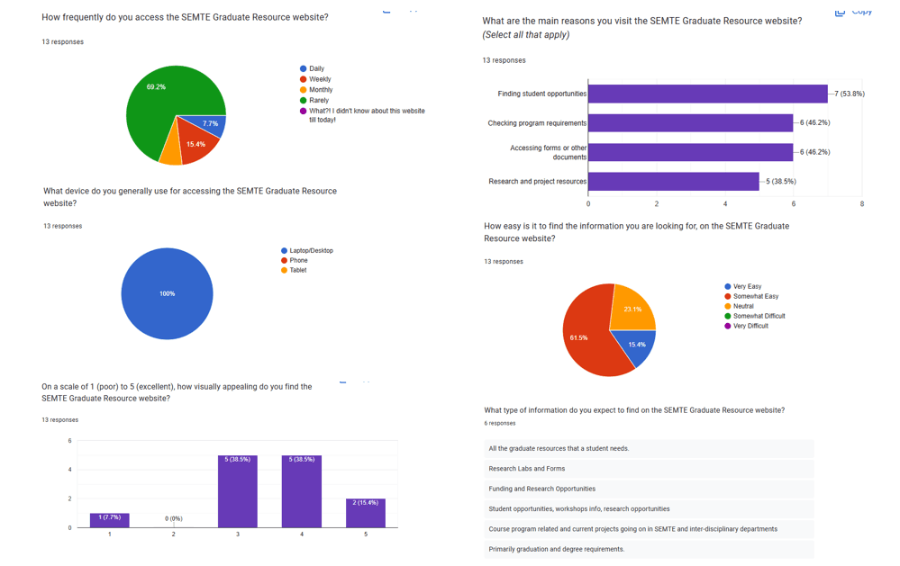 To gain quantitative insights, I distributed a Google Form survey among graduate students across various SEMTE programs.