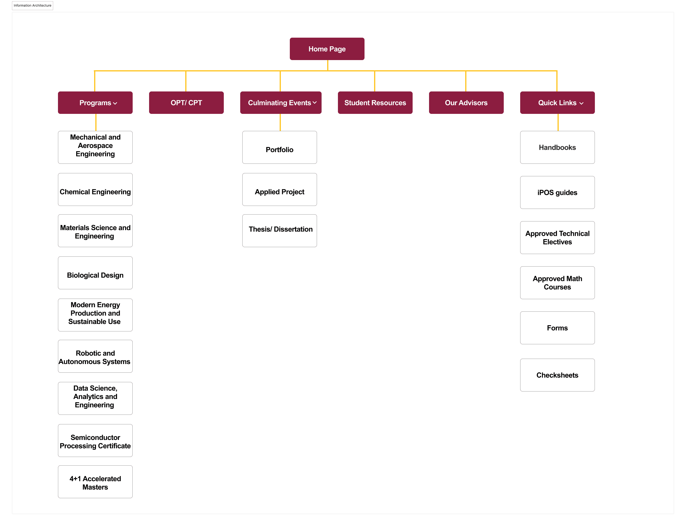Information hierarchy: Organizing key content areas—advising, funding, graduation, and CPT/OPT—based on frequency of use and user goals identified during research.