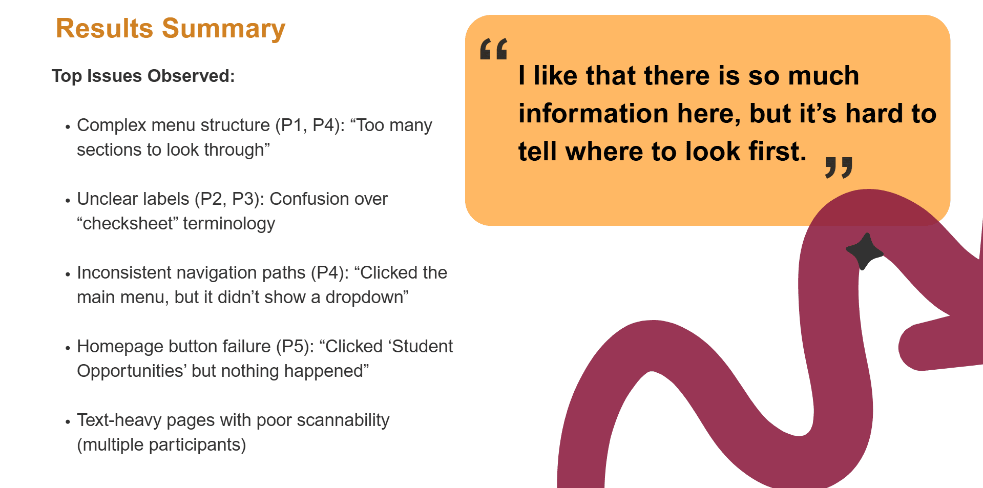 Many were unaware that certain resources (like student organizations and research support) even existed on the site.
